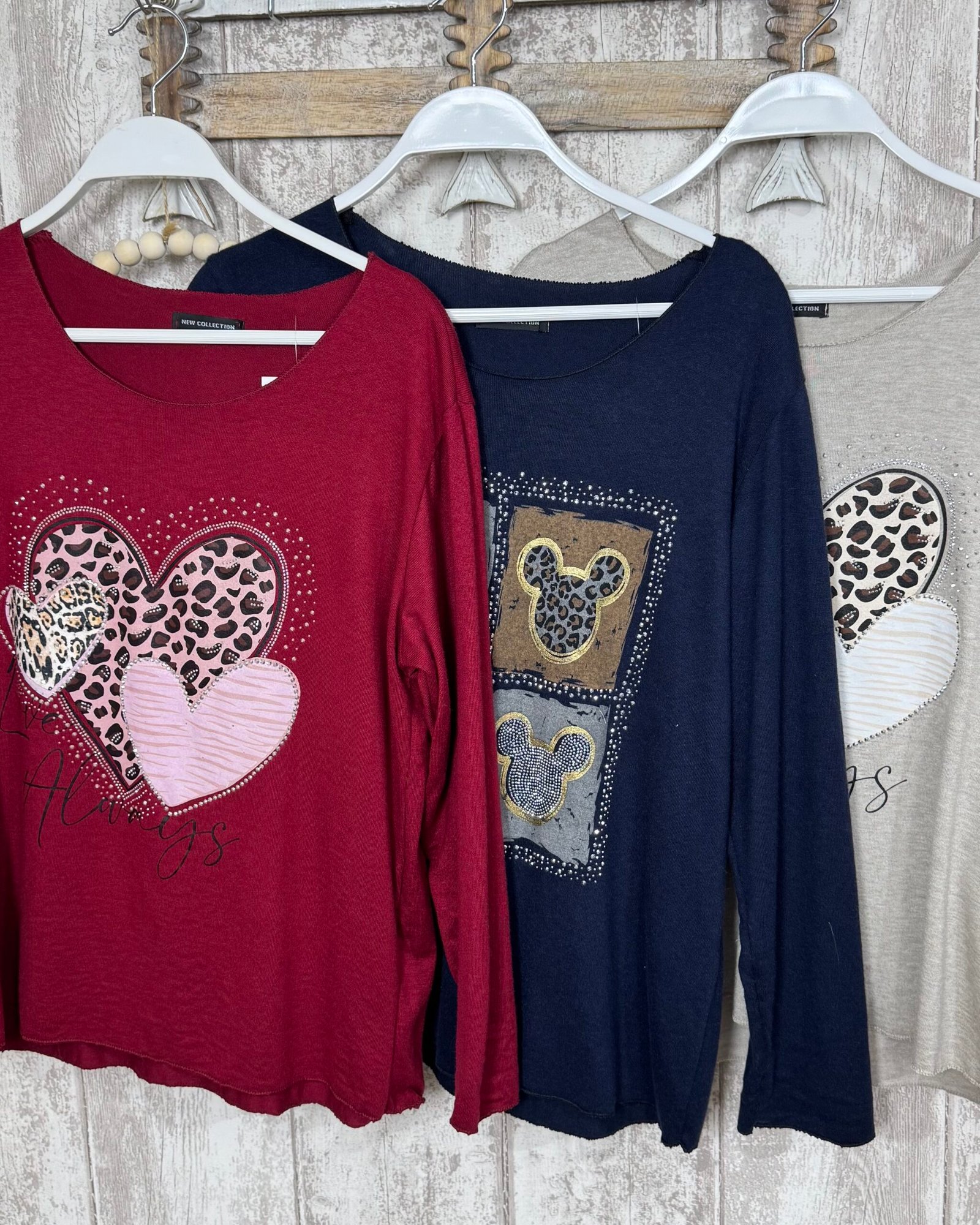 Camiseta de manga larga con dibujos muy originales y estampaciones de pedrería.