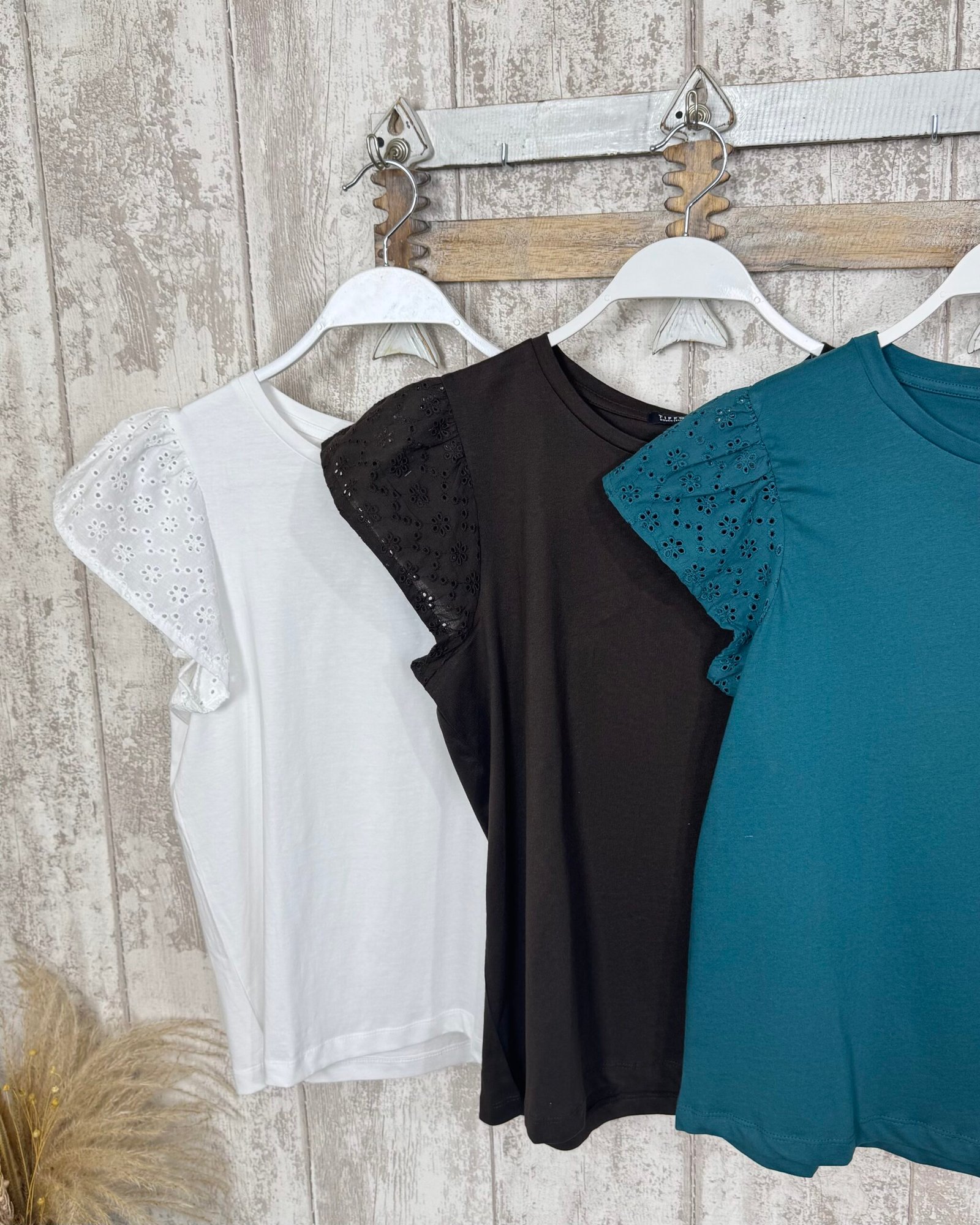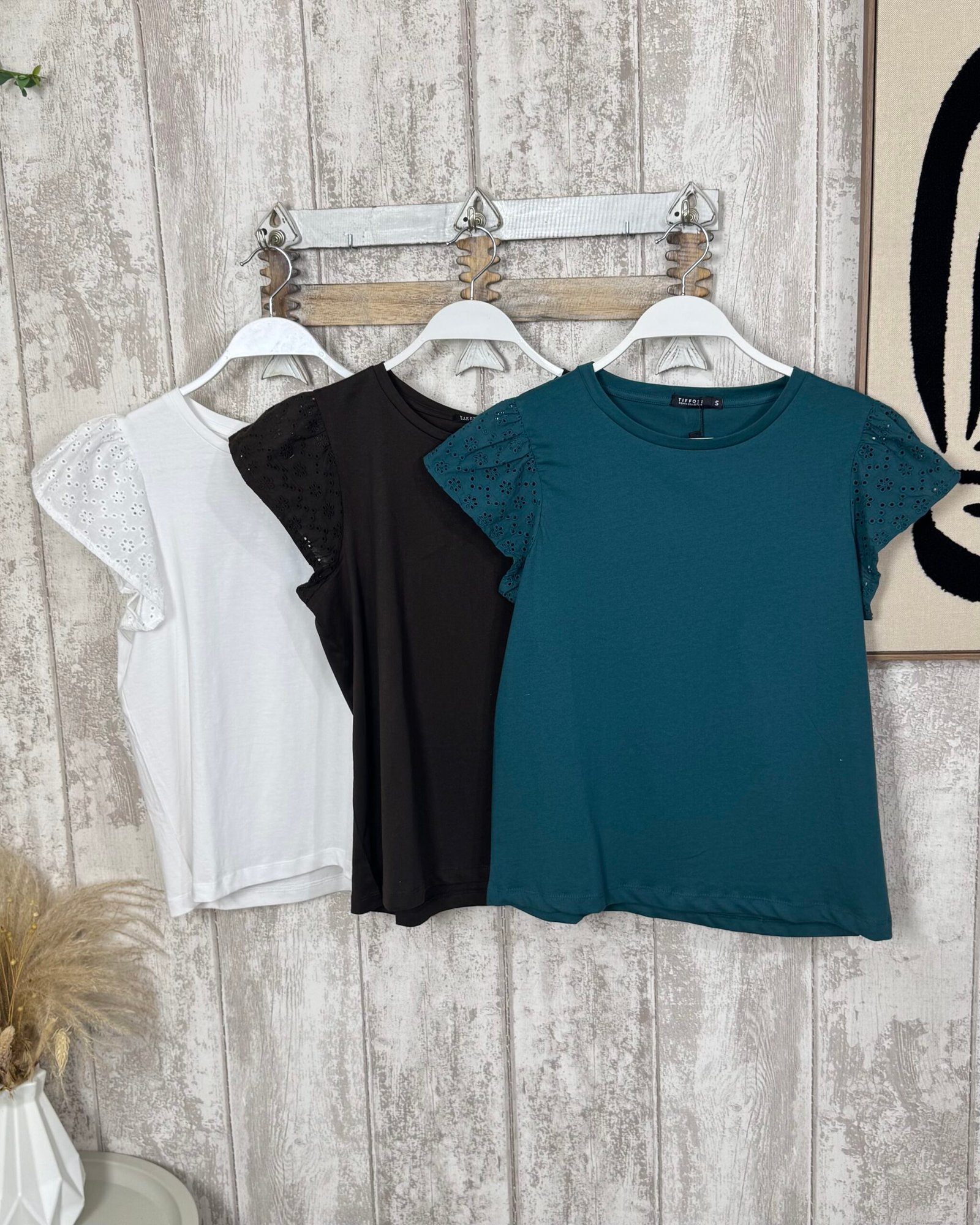Camiseta lisa con detalle de la manga troquelada. Cuello a la caja.