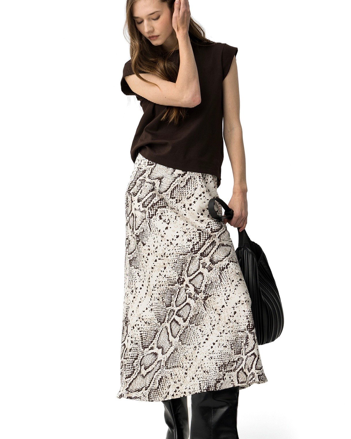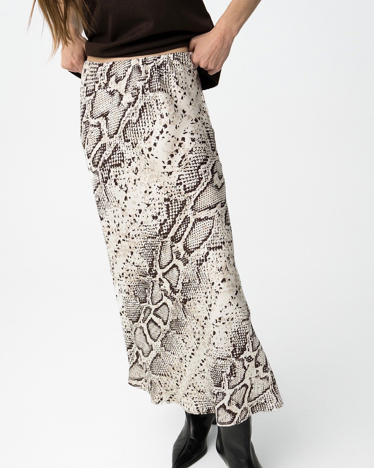 Falda en satén, con estampado en animal.