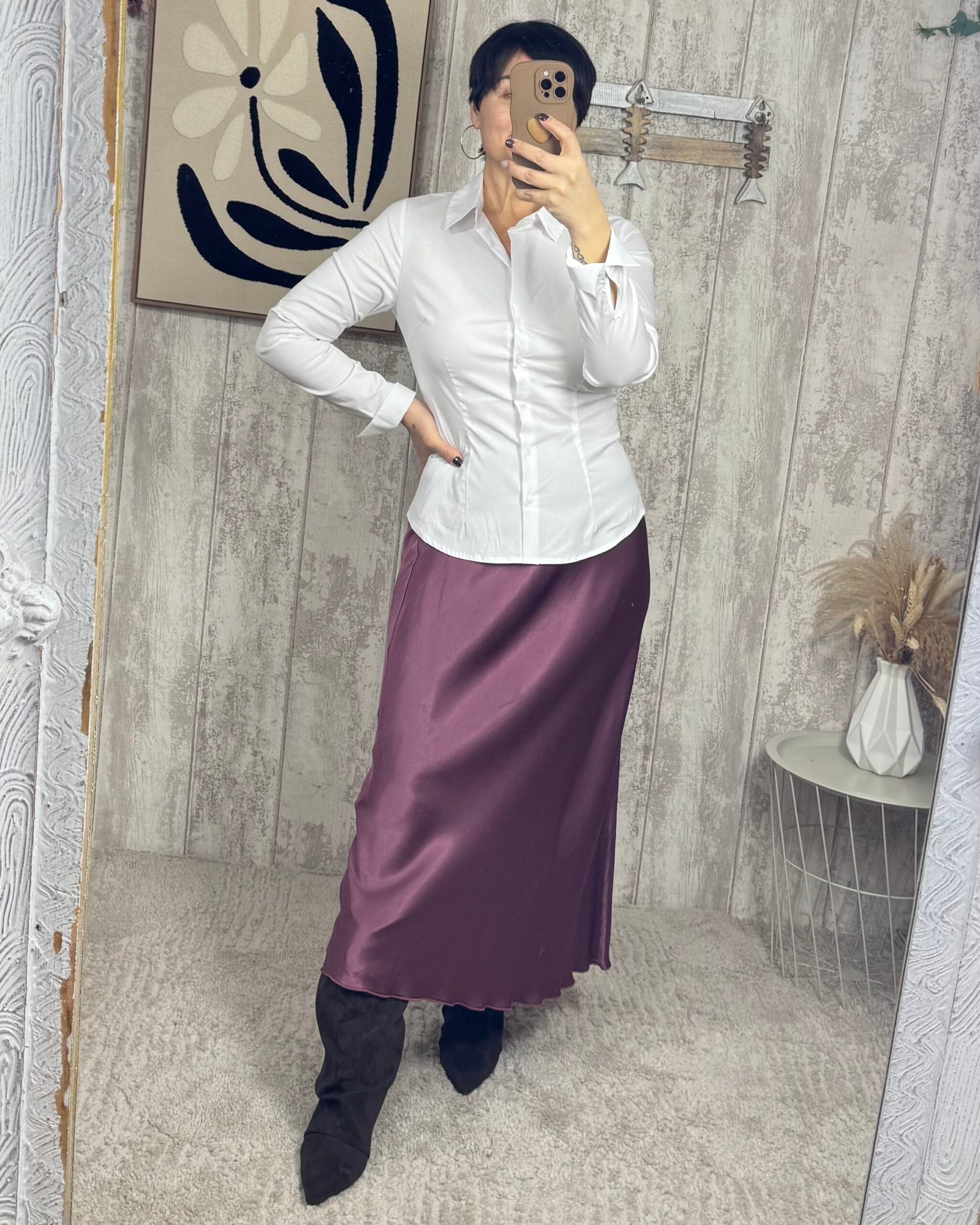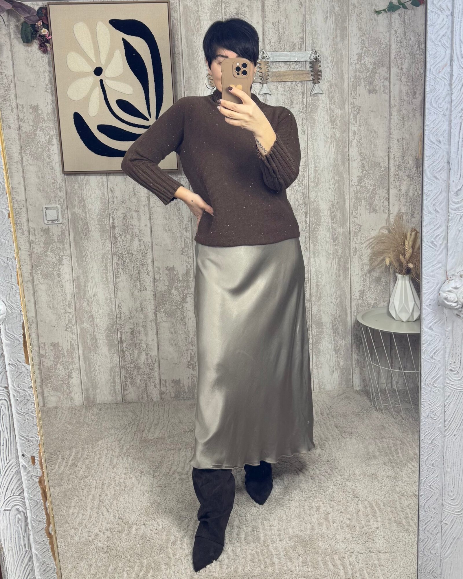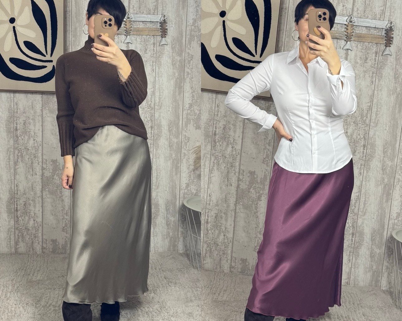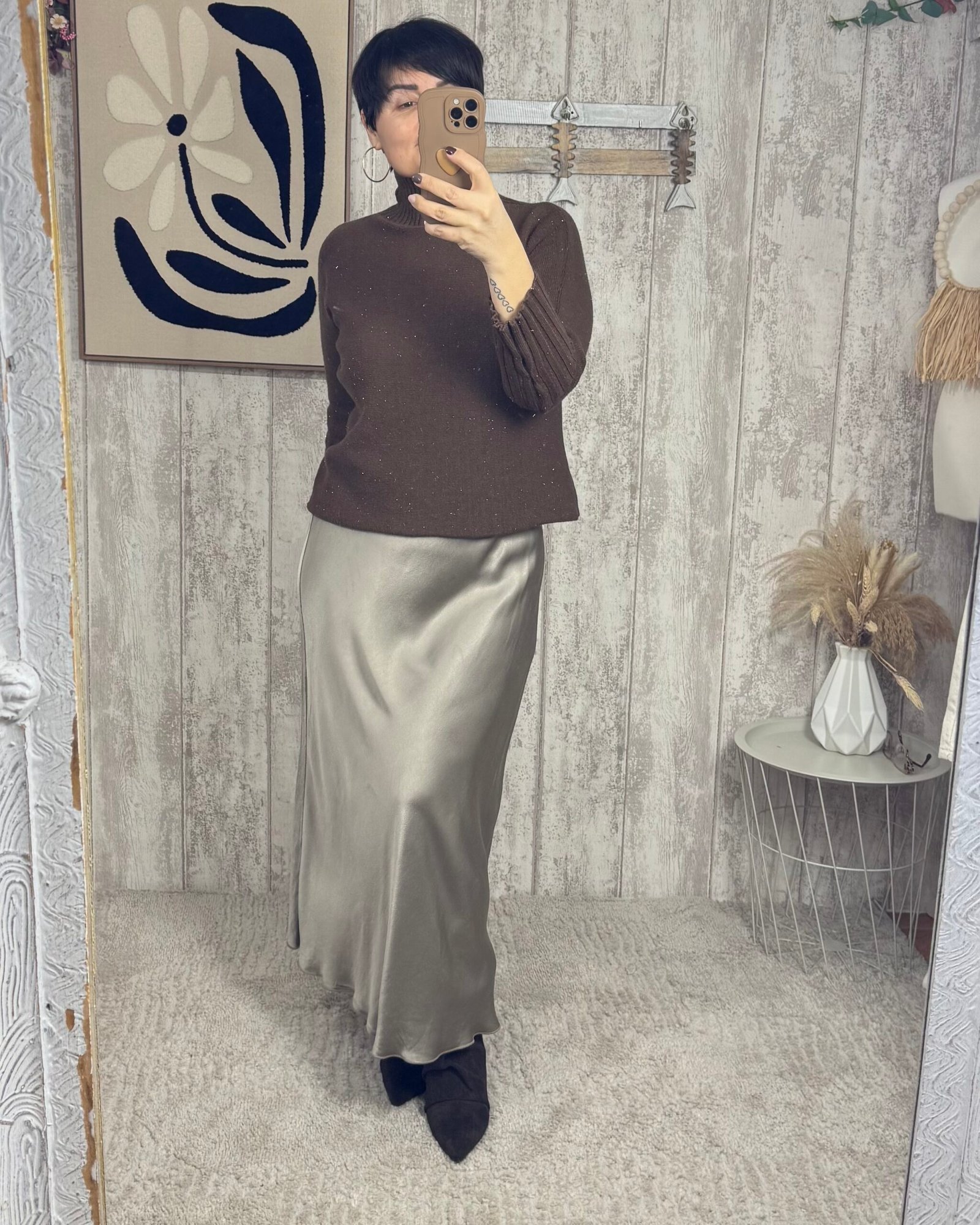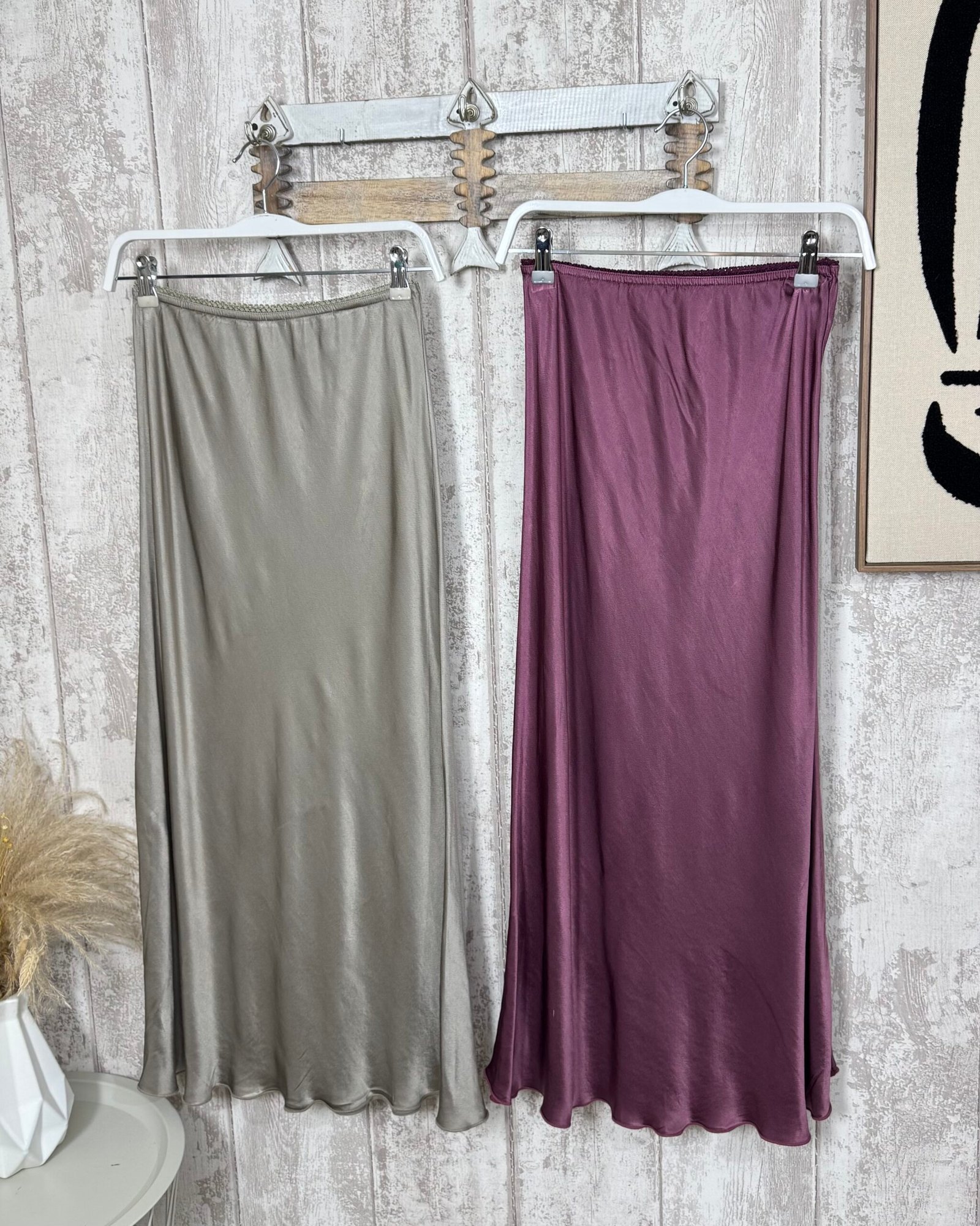 Falda en satén con un largo midi.