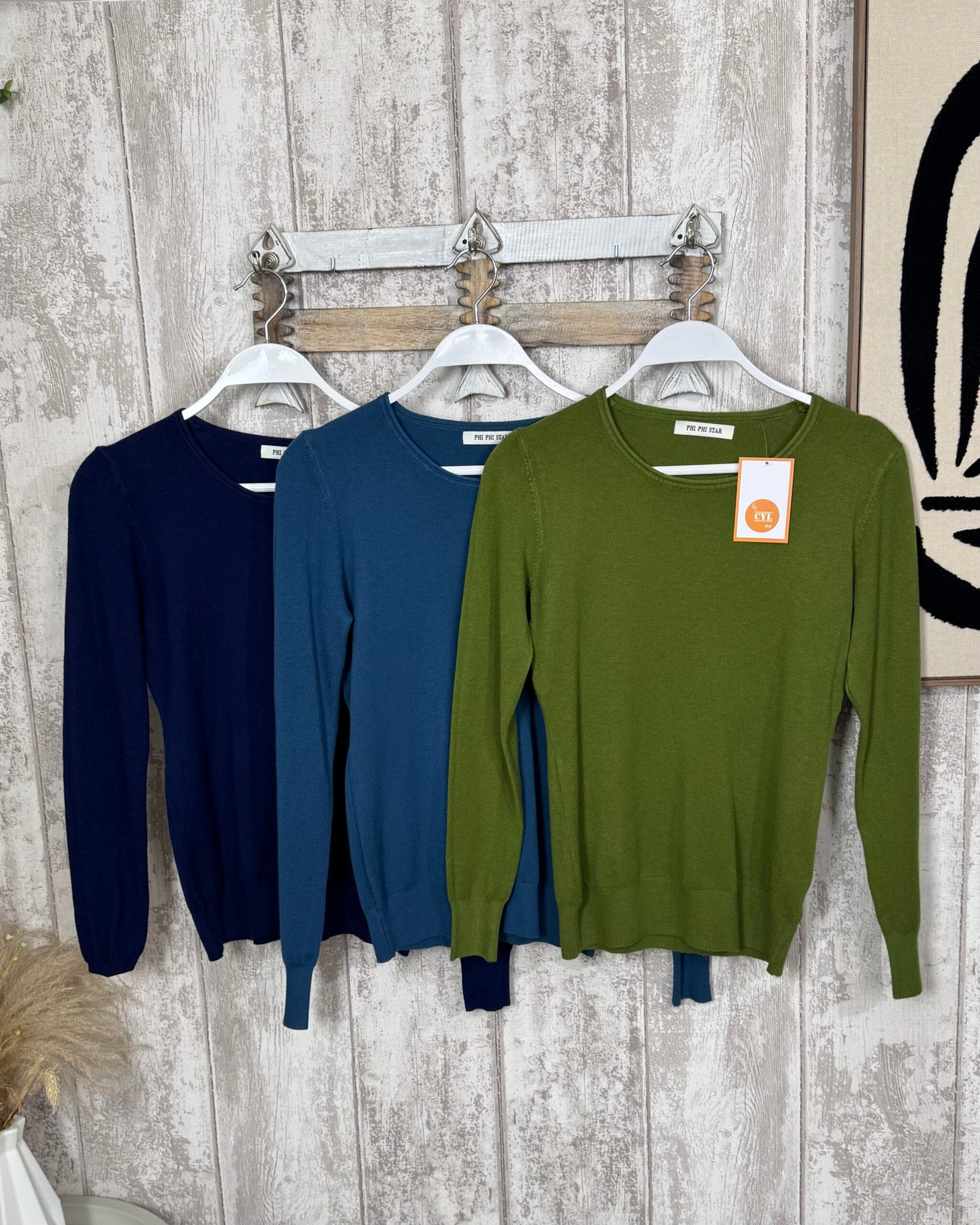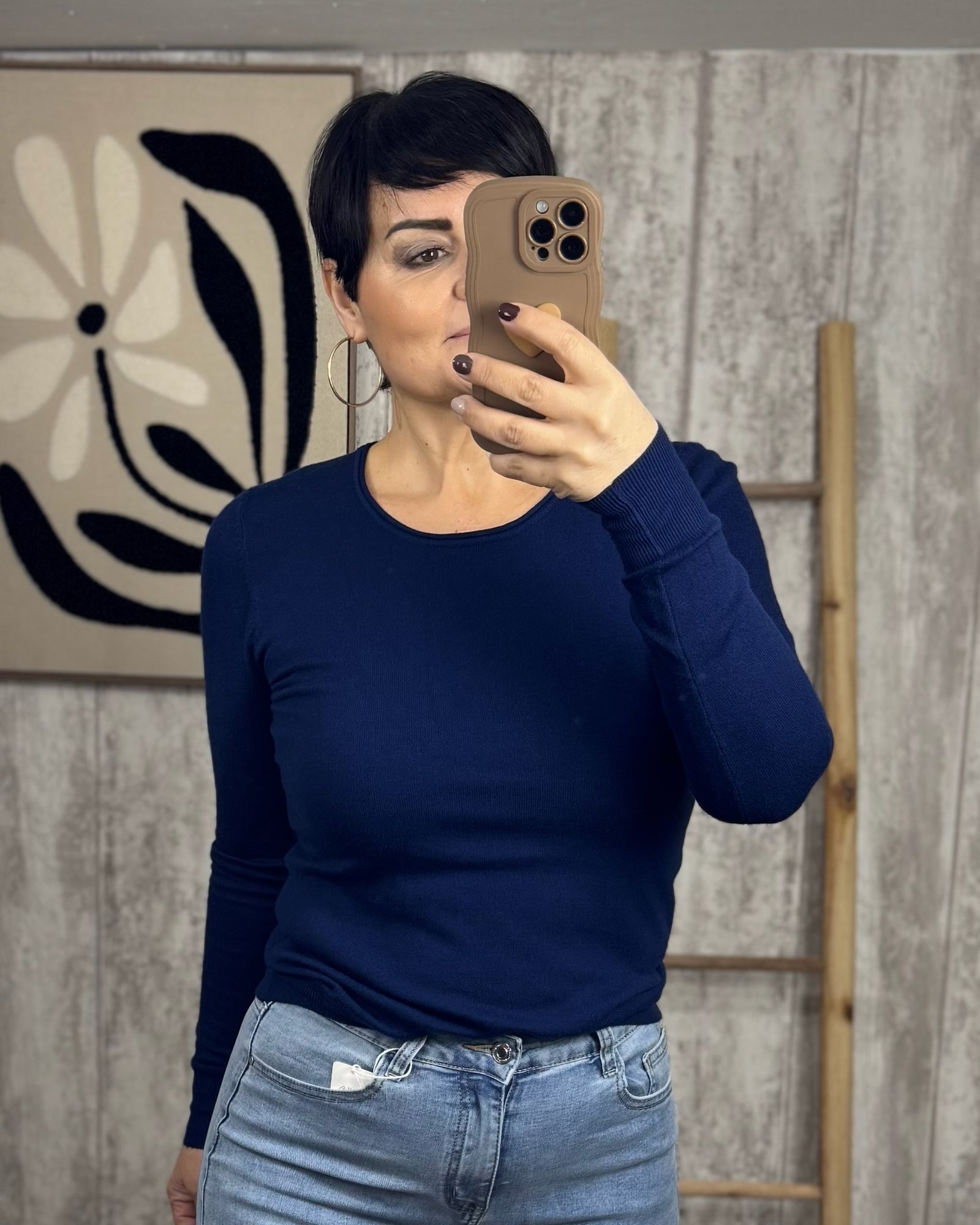 Jersey básico con cuello a la caja, de un tejido finito y muy gustoso.