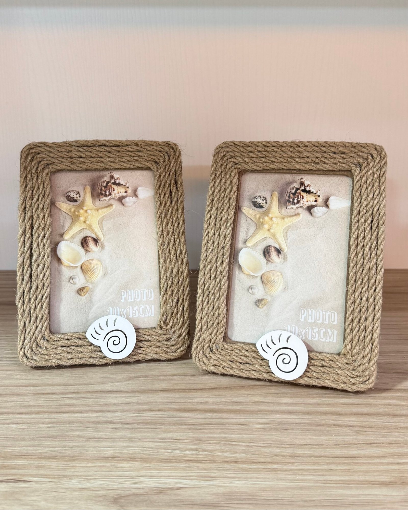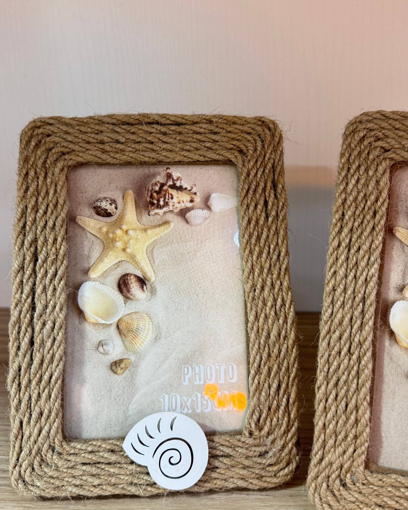 Portaretratos de cuerda natural, con detalle de caracola.